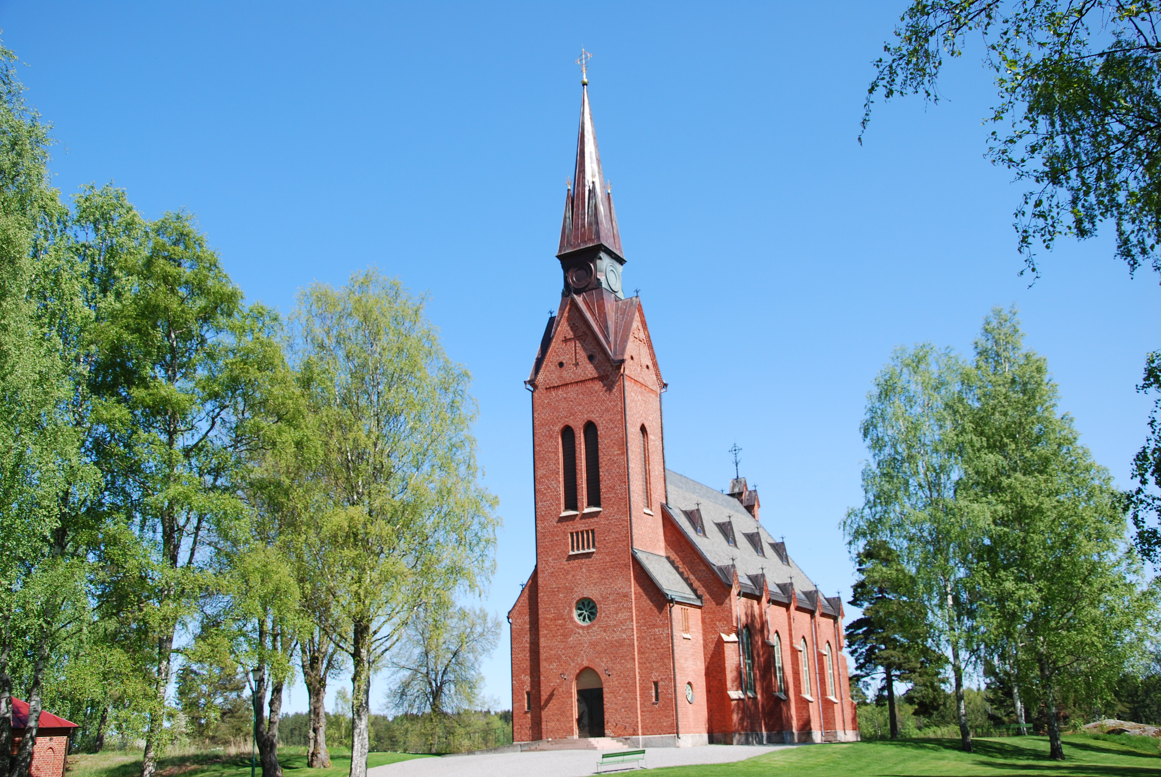 Den nuvarande kyrkan i Ny byggdes åren 1887-1889 ett kort stycke öster om kyrkogården. Efter arkitekt Agi Lindegrens ritningar uppfördes den nya kyrkan i nygotisk stil i rött tegel. Med sitt rektangulära långhus, branta skiffertak och kyrktorn i väster med hög spira, har kyrkan en framträdande placering på kyrkudden som sticker u i Nysockensjön. Invigningen ägde rum söndagen den 20 juli 1890.