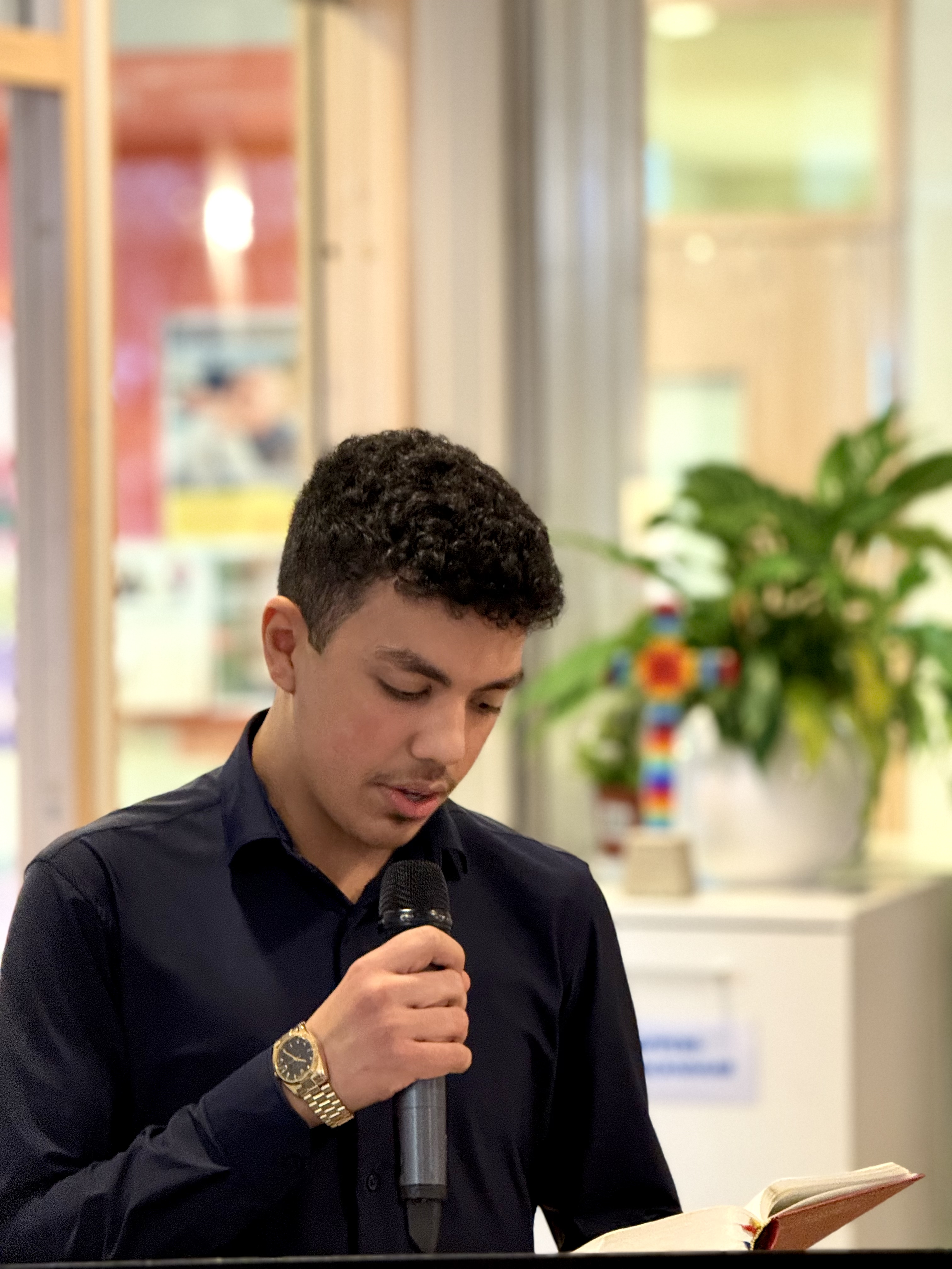 En stund in i firandet presenteras Elias Sjöström, en sextonnårig kille från Alby. Några dagar före jul kom han till Ljusets kyrka på eget bevåg tillsammans med sin mamma och bad om att få framföra några sånger under vårt julaftonsfirande.