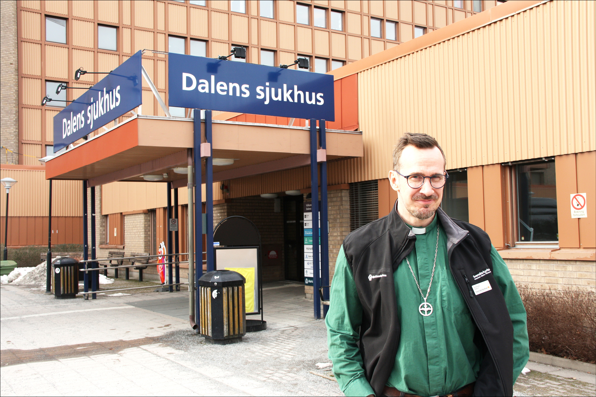 En vanlig dag på sjukhuset börjar Andreas med att kolla att ”Stillhetens rum” ser fräscht ut. Stillhetens rum är ett andaktsrum som är öppet för alla, oavsett religion eller livsåskådning, och som församlingen har ansvar för. Därefter tar han en fika på caféet tillsammans med vaktmästare, väktare och andra anställda på sjukhuset. Caféägaren träffar ofta ledsna människor och hänvisar dem då till Sjukhuskyrkan. Andreas har också kontinuerlig kontakt med vårdpersonalen som ofta ber honom besöka någon viss patient som har frågat efter någon att prata med. En stor del av tiden på Dalens sjukhus handlar om att finnas tillgänglig ifall något händer.