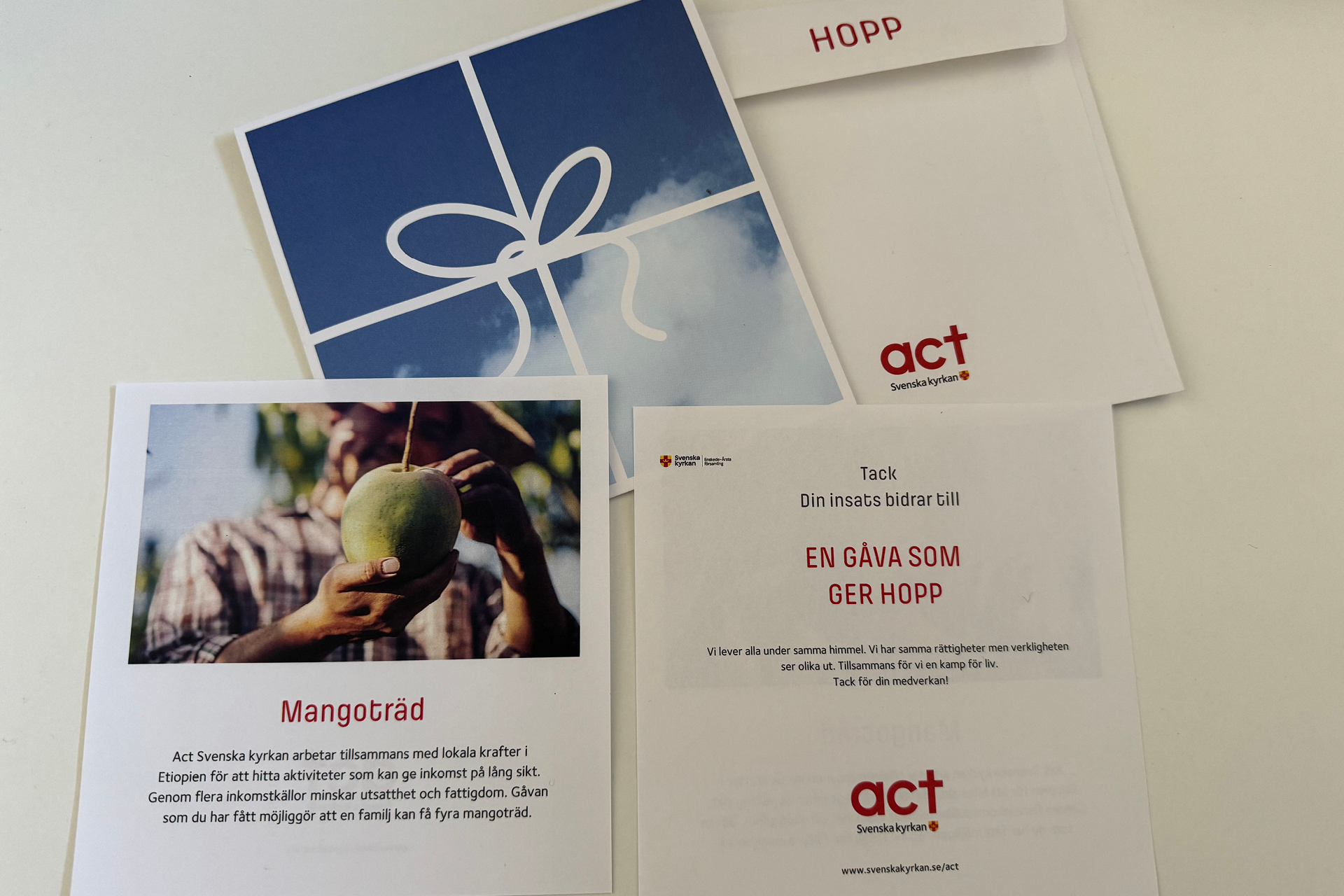 Församlingen ger bort gåvobevis till Act Svenska kyrkan.