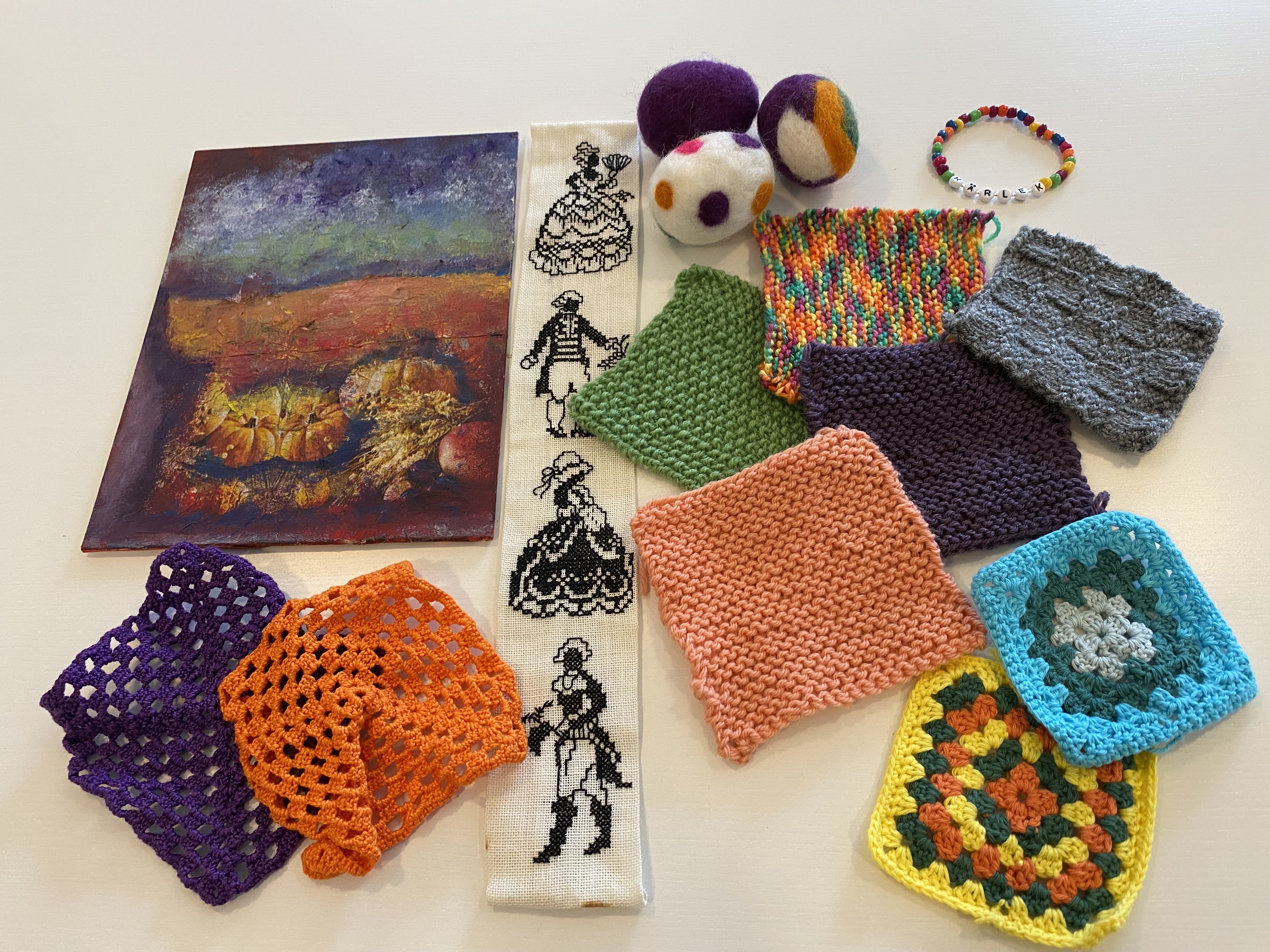 Här finns symaskin, garn och stickor framme för den som vill prova eller skapa något nytt. Du kan också ta med dig ett eget projekt och passa på att fixa till det i gott sällskap.