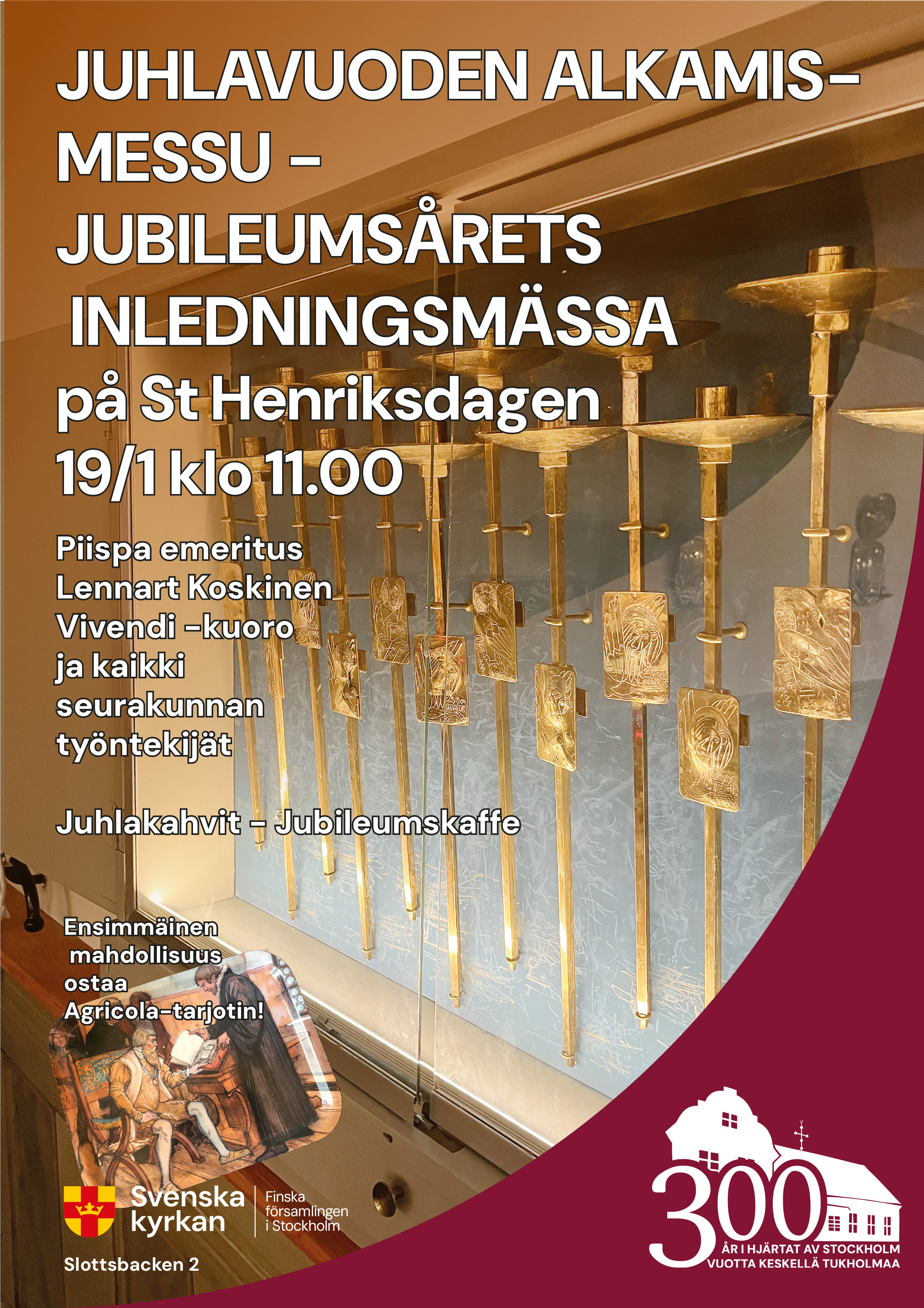 Tukholman Suomalaisen seurakunnan juhlavuosi on nyt käynnissä! Tutustu juhlavuoden syksyyn näillä sivuilla. Tervetuloa! Jubileumsåret är igång! Bekanta dig med höstens händelser här nedan! Välkommen!