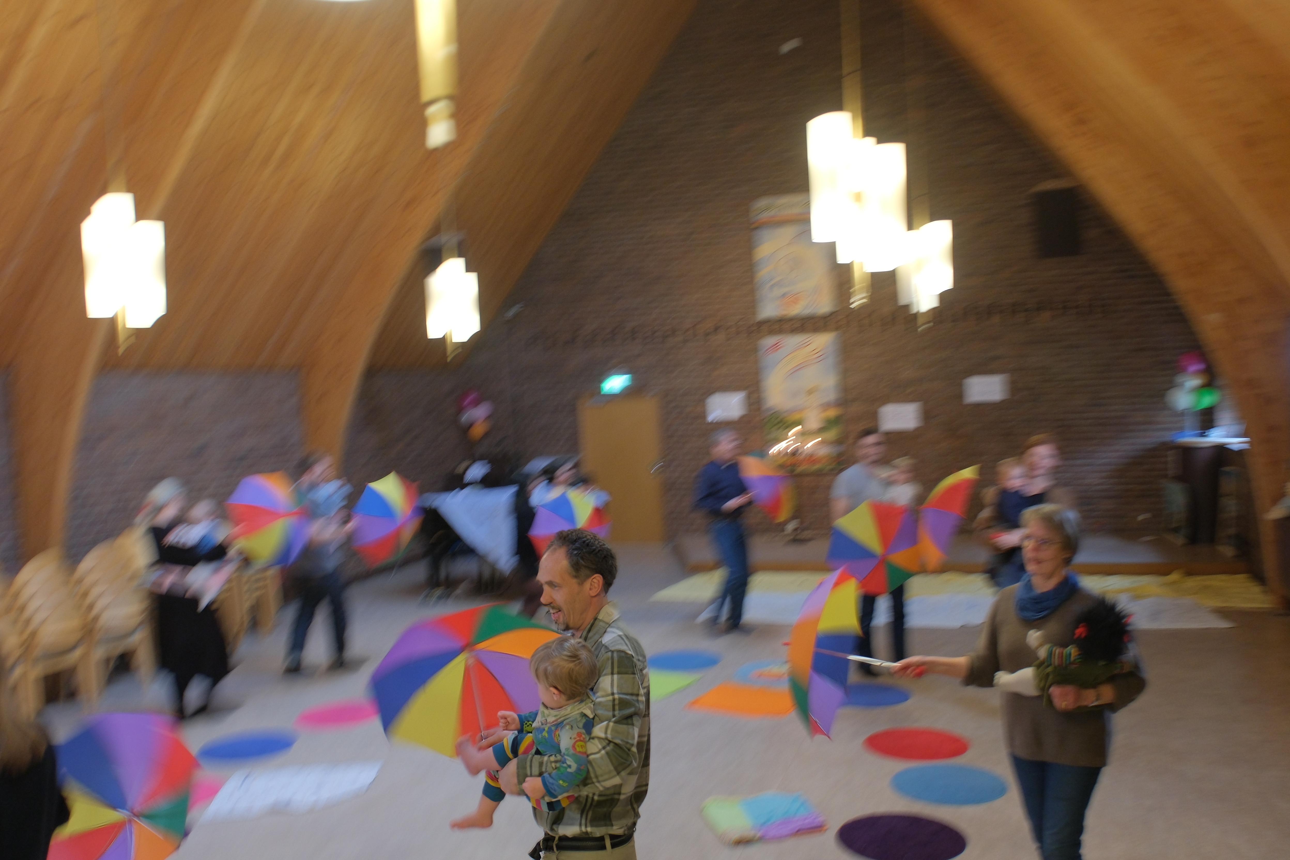 Det är en vanlig tisdag i mars och folk droppar in i maklig takt. Både barn och föräldrar rör sig hemtamt i det stora rummet – där det verkar vara högt i tak både bokstavligt och bildligt – och sätter sig snart tillrätta på färgglada runda mattor på golvet. De flesta som är här idag är inne på sin andra termin och vet hur allt går till. Ur högtalarna strömmar lugn musik som sätter tonen för dagen. Föräldrar och barn hinner hälsa på varandra ordentligt innan Helene Stensgård Larsson, organist i Vasakyrkan och den som leder Babypsalmsången, börjar trumma med fingertopparna på en stor djembetrumma. Effekten är omedelbar. Femton bebisar med tillhörande föräldrar vänder sig genast mot ljudet och fokus är ett faktum. Helene betonar på flera sätt att denna stund är till för barnet, bland annat genom att det är barnets namn och inte förälderns som står på deltagarlistan och ropas upp i tur och ordning. Uppmaningen till gos med liten bebis kanske är överflödig, men föräldrarna vet vad som gäller och använder stunden till att umgås med sina barn. Prat med övriga föräldrar finns det gott om tid till efteråt, och kaffet står redan förberett i rummet intill.