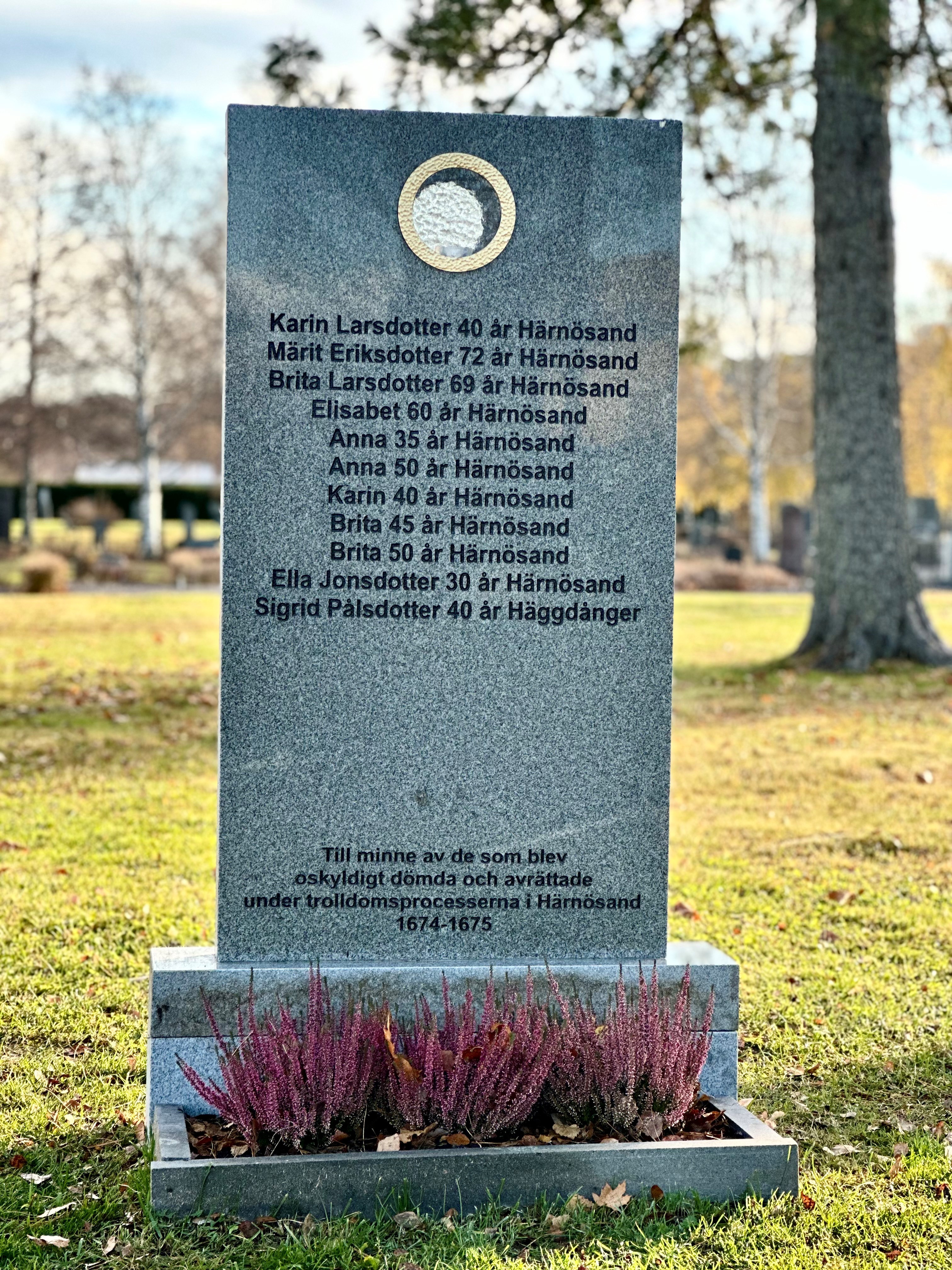 På Gamla kyrkogården namnges 11 oskyldigt avrättade personer, på kyrkogården i Säbrå namnges 18 oskyldigt avrättade personer och på kyrkogården i Stigsjö namnges 11 oskyldigt avrättade personer.