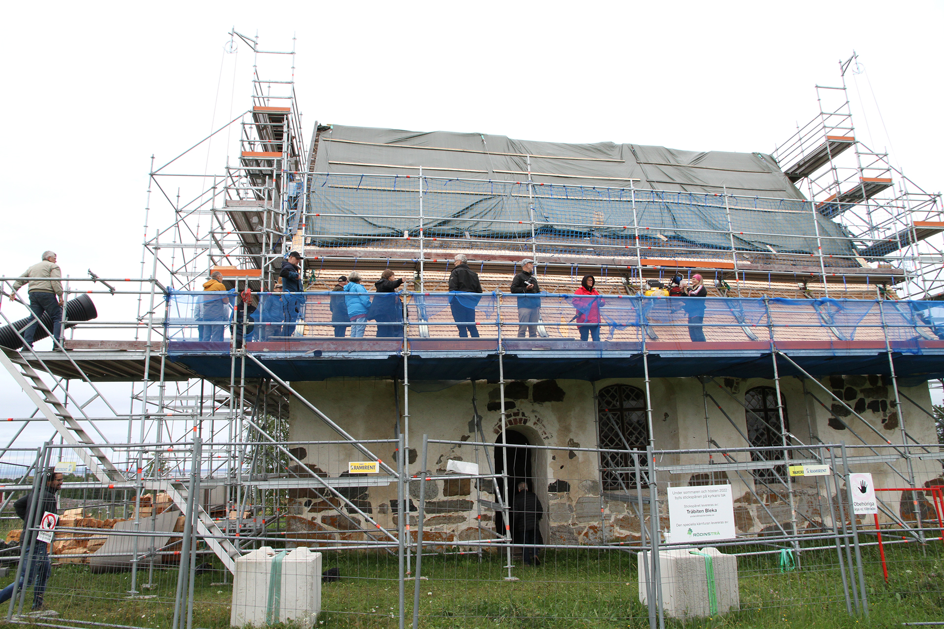 Den lilla medeltidskyrkan har ett stort tak. Det är både brant och högt, vilken är en fördel när vatten och snö ska rinna av, men det behövs en stor mängd virke för att lägga det nya taket. Takläggaren Kenneth Hellström räknar med att det blir cirka 40 000 träspån innan taket är klart.