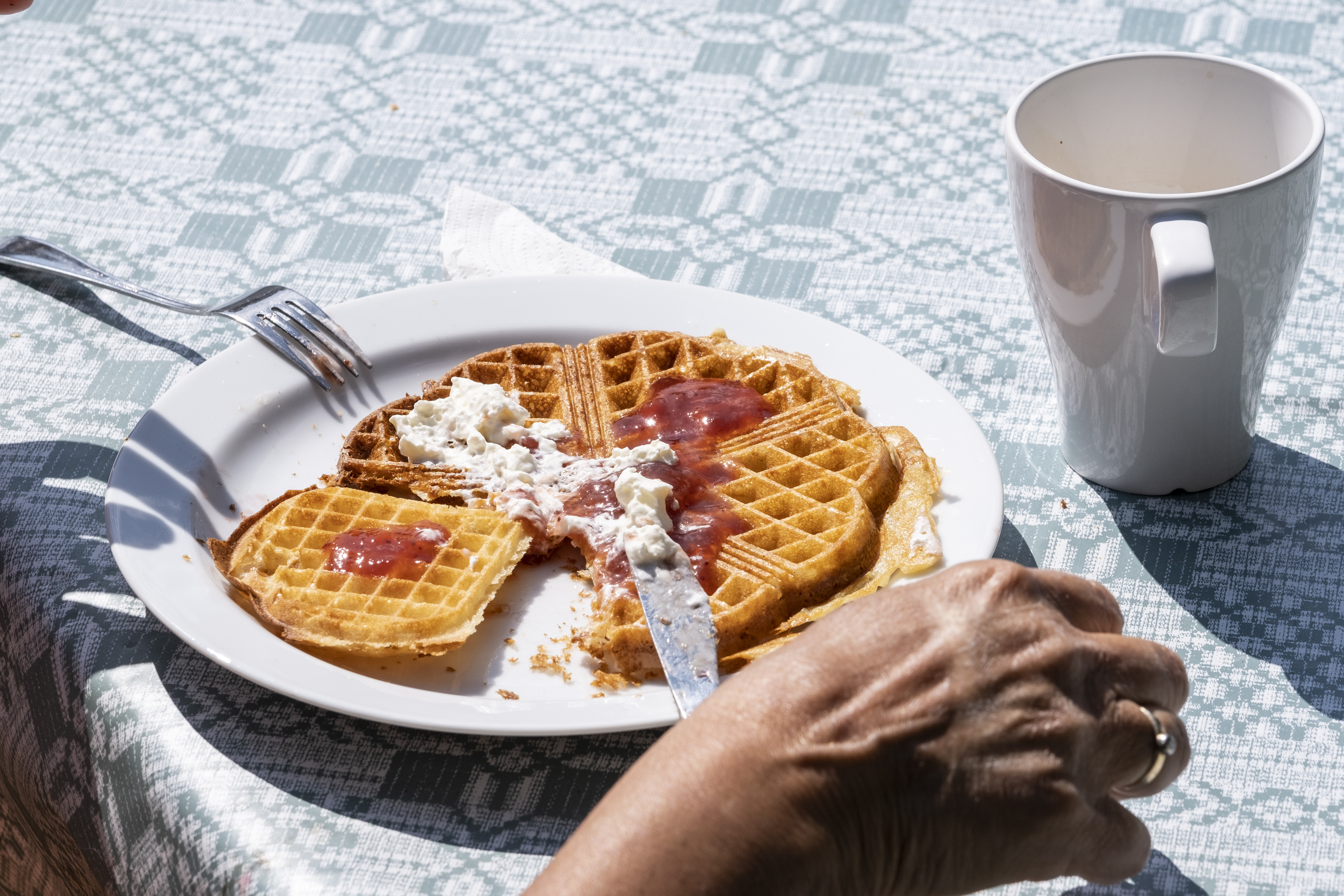 Klockan 13.00-16.00. Nygräddade våfflor med tillbehör. Start 14/1.