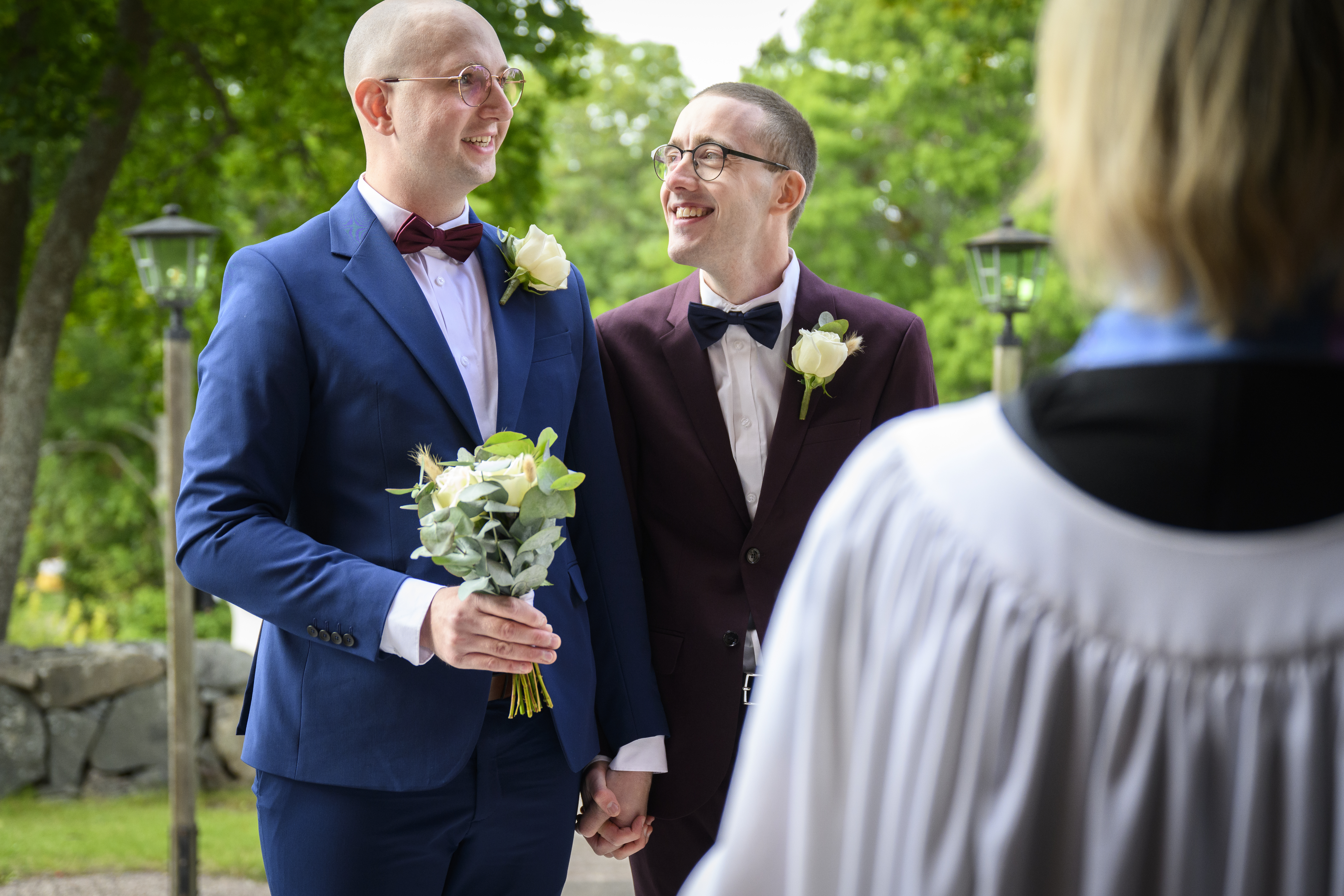 Det enda som krävs är: Giltig hindersprövning, legitimationer, en eller två ringar, präst och två vittnen. Vittnena kan vara kyrkomusikern och vaktmästaren, så det behöver ni inte ordna själva om ni inte vill. Det viktigaste är att ni känner er bekväma i ert val. Det är er dag!