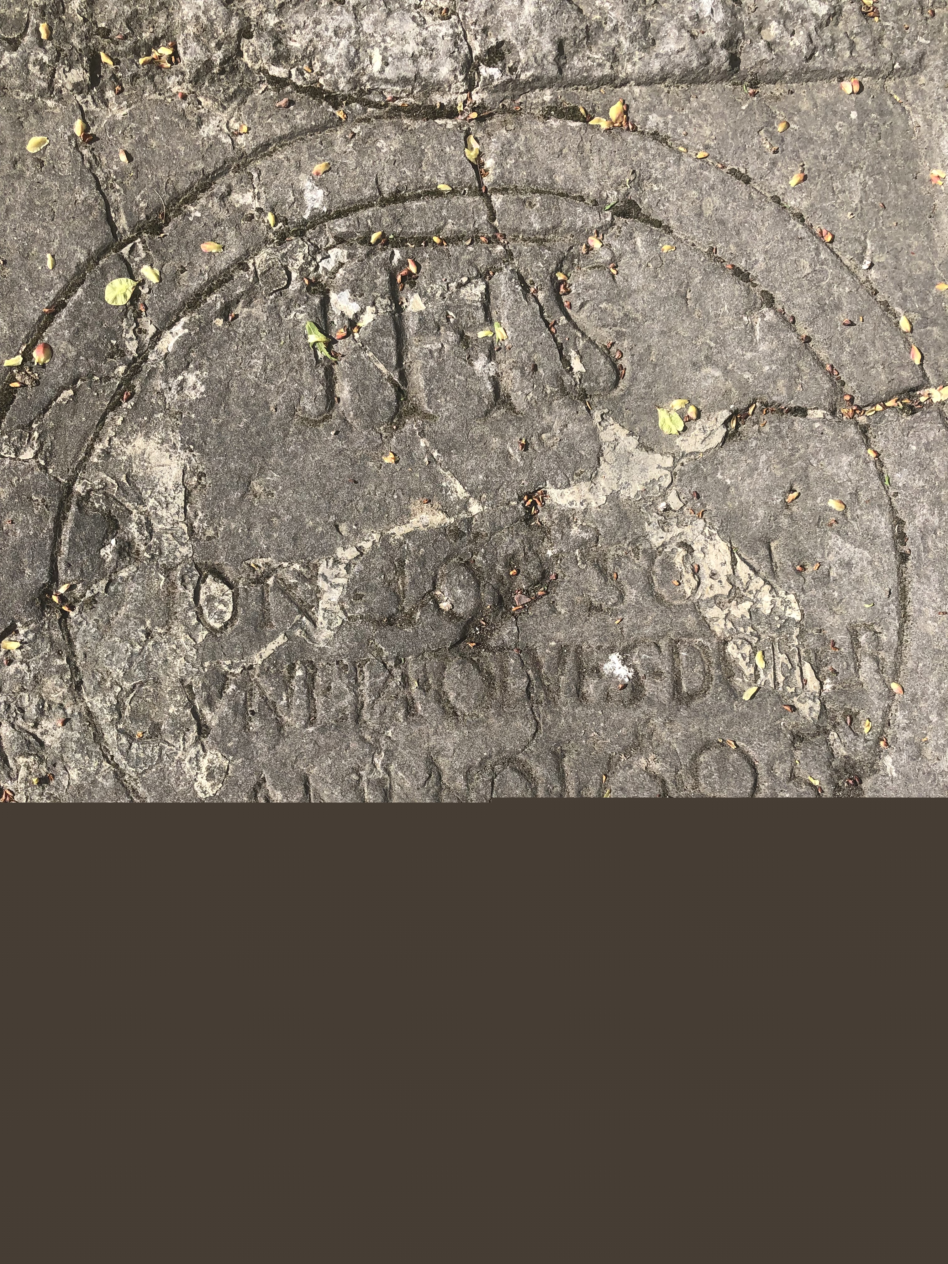 ”Stenen har sönderslagits i 33 delar, vilka räddats och hopfogats av byggmästaren F.A Frimodig, Karlstad.”