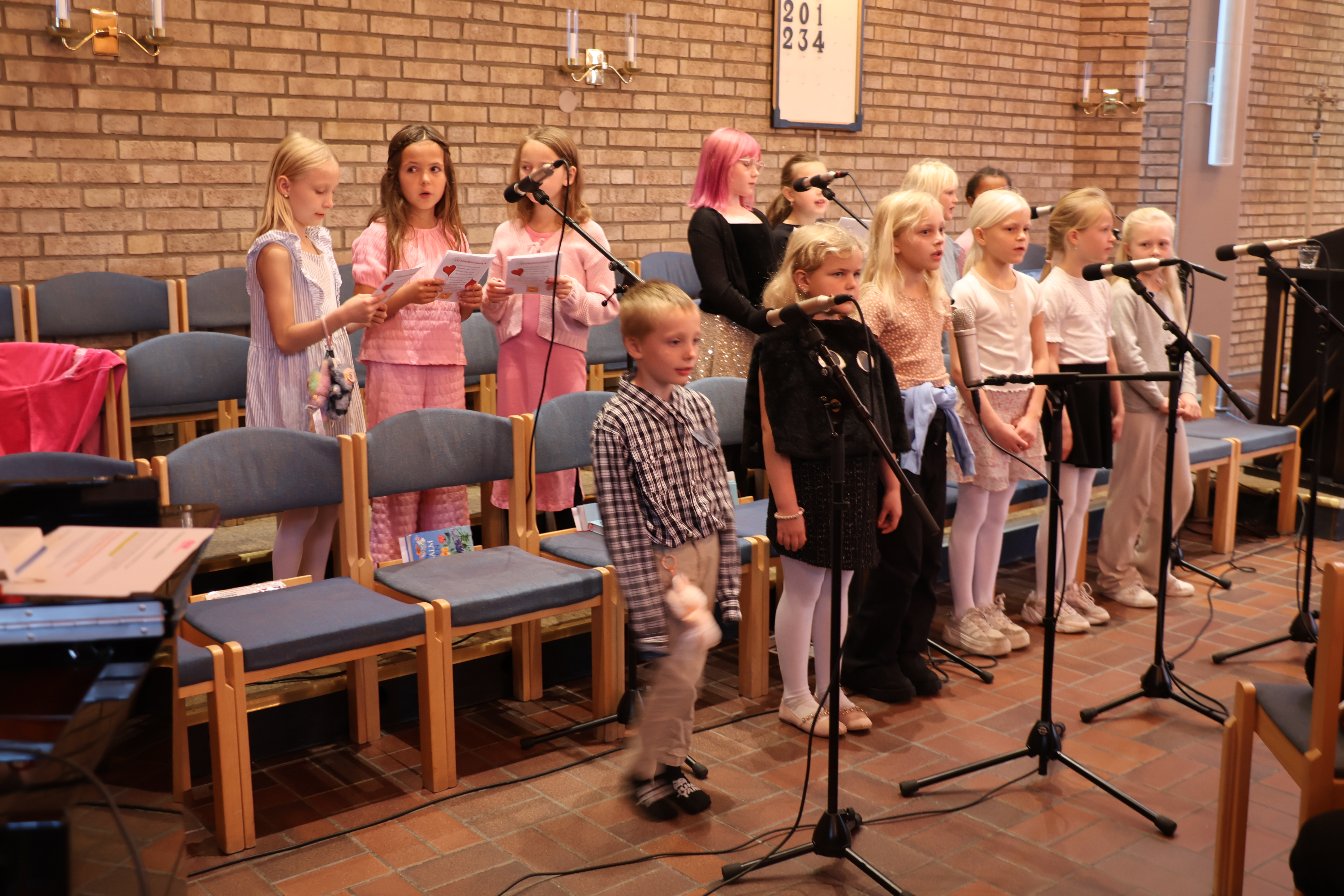 Kören övar en gång i veckan i körrummet på bottenvåningen av Västerstrandskyrkan och sjunger en massa blandade och roliga sånger.
