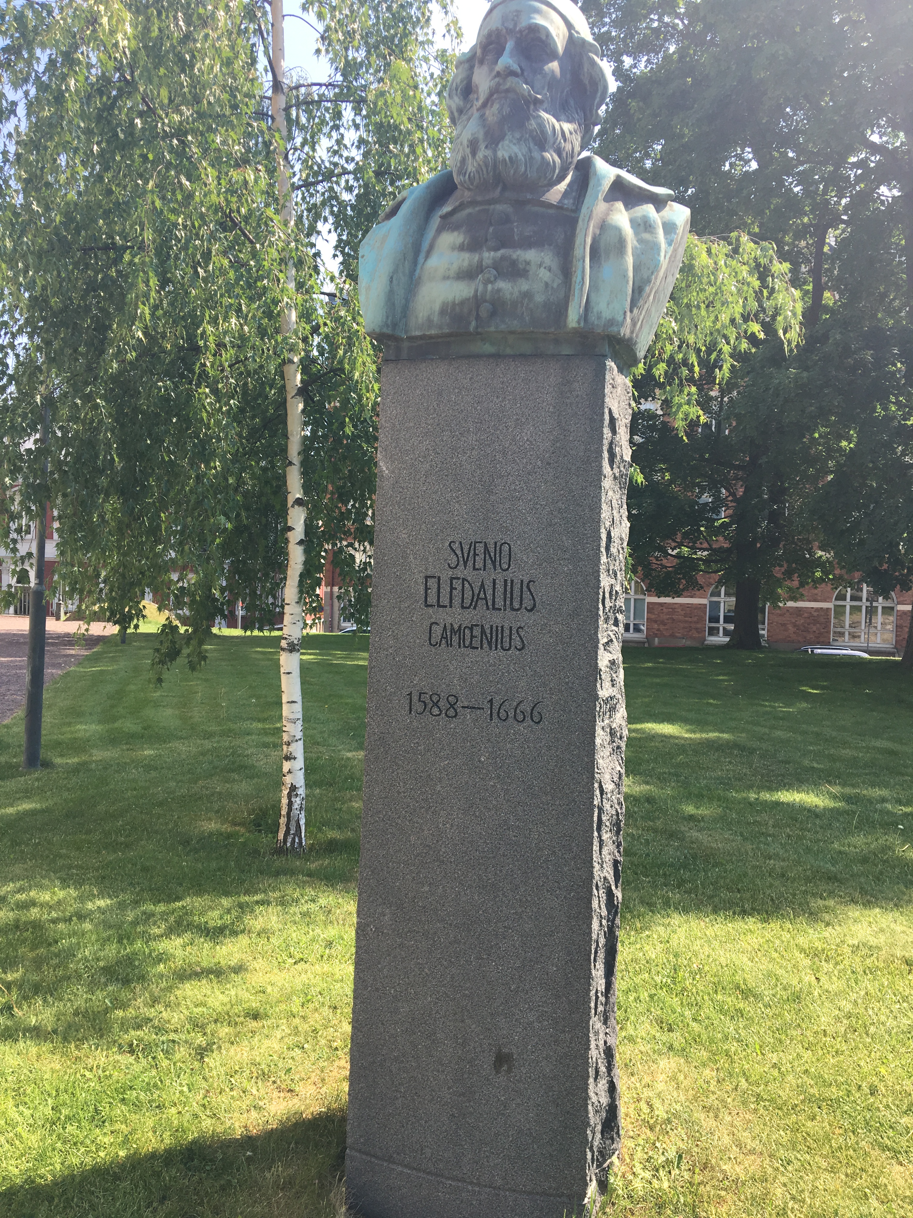 Mellan Domkyrkan och det man i folkmun kallar ”Gamla gymnasiet” står en byst. Bysten som är skapad av konstnären Carl Eldh restes på platsen 1929.