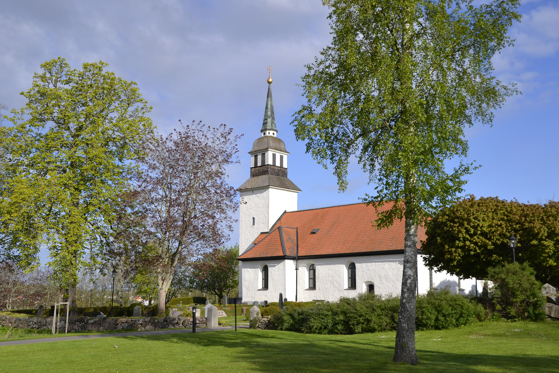Det finns delar av den medeltida kyrkan kvar, både i byggnaden och i vissa inventarier såsom dopfunt och krucifix från medeltiden samt predikstolen från 1600-talet. Altartavlan av Eskil Winge föreställer Jesus, som med kalken i handen välkomnar oss.