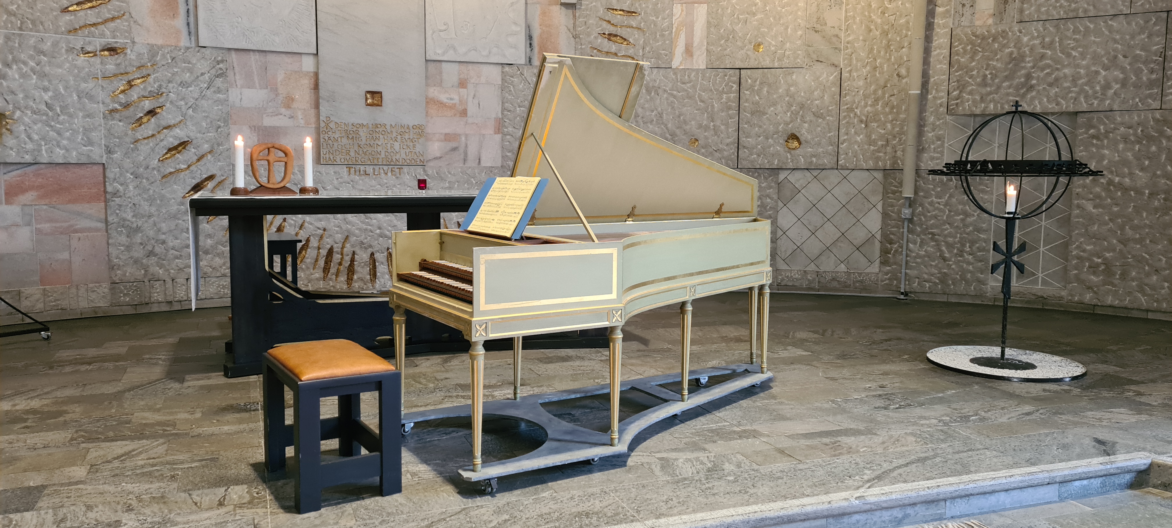 Den cembalo som står i S:t Lars kyrka är tvåmanualig och byggd av cembalo- och orgelbyggare Mats Arvidsson 1986.