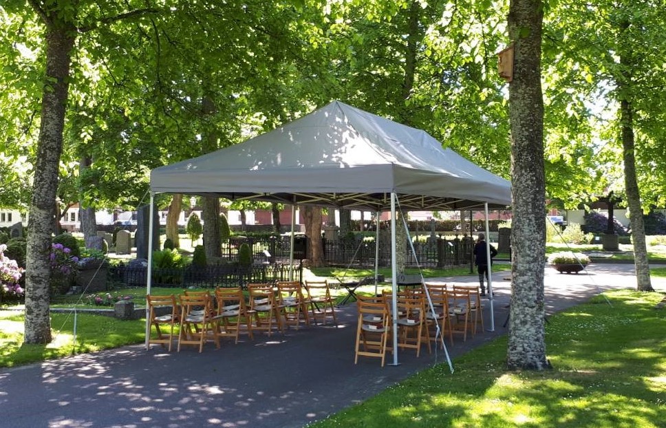 Dessa platser, försedda med katafalk, täcks vid ceremonitillfället av en tältduk för att skydda mot sol såväl som regn. Platserna passar både för begravning enligt Svenska kyrkans ordning och för borgerlig begravning.