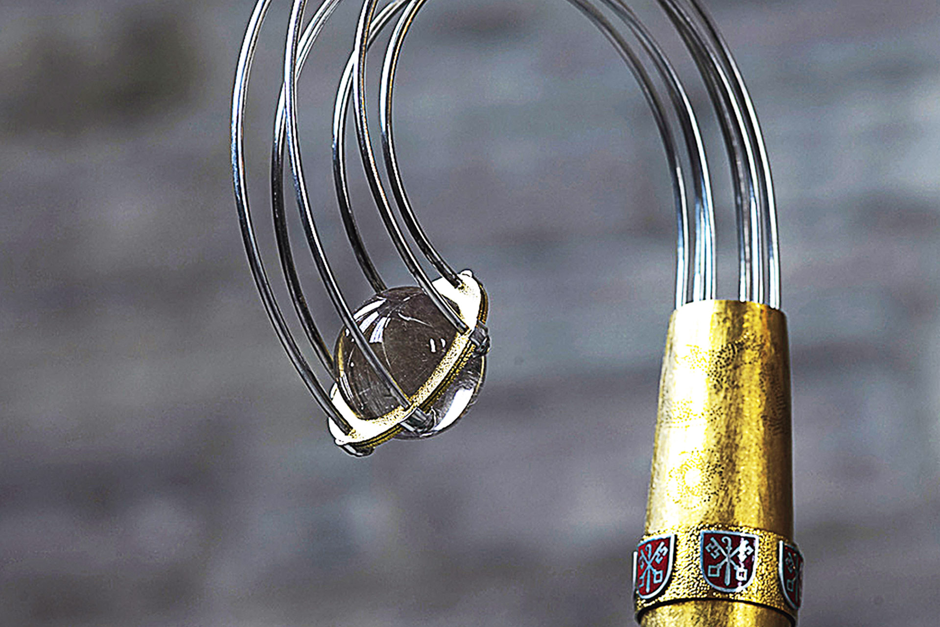 Kräkla = herdestav. En av biskopens kräklor är gjord i silver och bergkristall. Formgiven och tillverkad av silversmed Peter de Wit, Linköping 1996. Biskopsstaven är utförd av genombrutna silvertenar sammanhållna av ringar i silver och en kula i bergkristall. Staven bär också symboler i emalj med stiftsvapnet, Petrus himlanycklar, en alpkråka som symbol för Thomas av Becket, samt fem sårmärken som symbol för Heliga Birgitta (uppenbarelse). Staven är hopfällbar och kan användas som resekräkla.