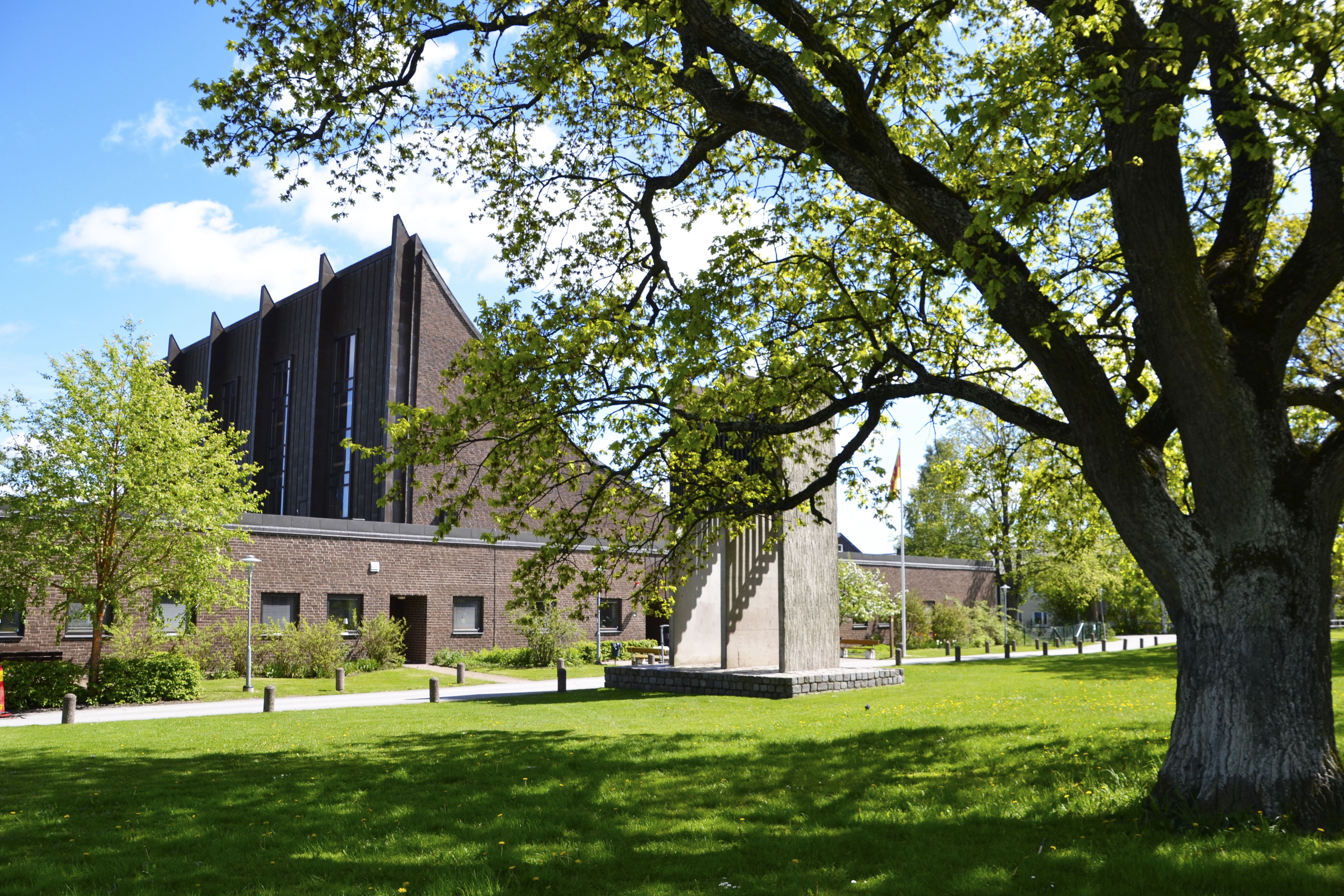 Stadsdelen Skäggetorp i Linköping började byggas 1965 och 10 år senare invigdes Skäggetorps kyrka på pingstafton. Arkitekt Kai bro Sörensen har skapat byggnaden med sitt sluttande tak. Skäggetorps kyrka har inte något påträngande och dominerande format. Den omges av ett luftigt parkområde med flera hundra år gamla ekar, karaktärsfulla stenblock och berghällar. På den öppna platsen framför kyrkans huvudingång i väster står en låg klockstapel uppförd av betongskivor på en sockel av tuktad gatsten. Kyrkans mittparti är framträdande med sitt säregna, insvängda pulpettak som en kontrast mot de låga horisontala ytterpartierna. Fasaden är murad i munkförband av brunt, hårdbränt tegel. Kopparplåt täcker taket och den höga nordfasaden med dess fem stora fönster. Läs mer om Skäggetorps kyrka.