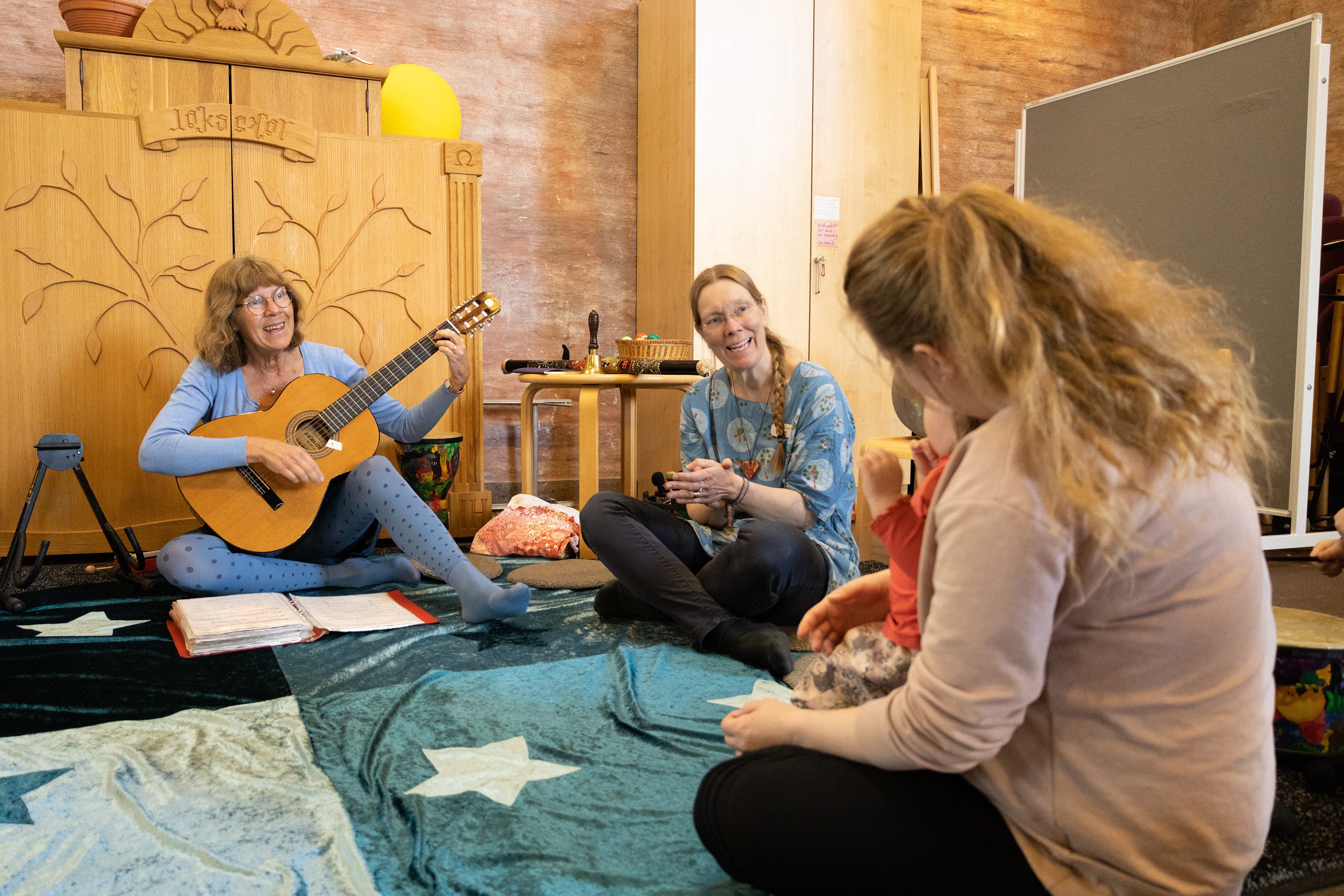 I Hertsökyrkan samlas barn under vissa gudstjänster, för att lyssna till bibelberättelser, pyssla och leka.