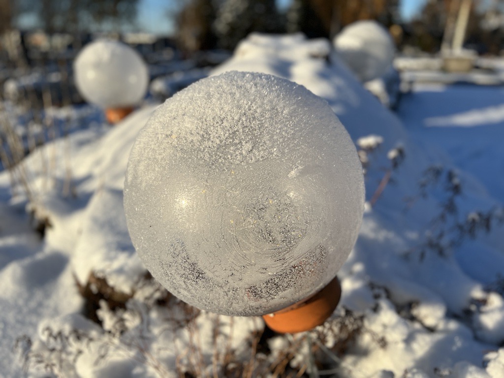 - Vi har monterat ljusslingor som vi fäst i hönsnät i varje glaskupa. Enkelt och effektfullt. ”Foten” på glaskupan är en fin detalj där vi tagit tillvara delar från trasiga terracottakrukor - återbruk det med, säger Ingela Johansson avslutningsvis.