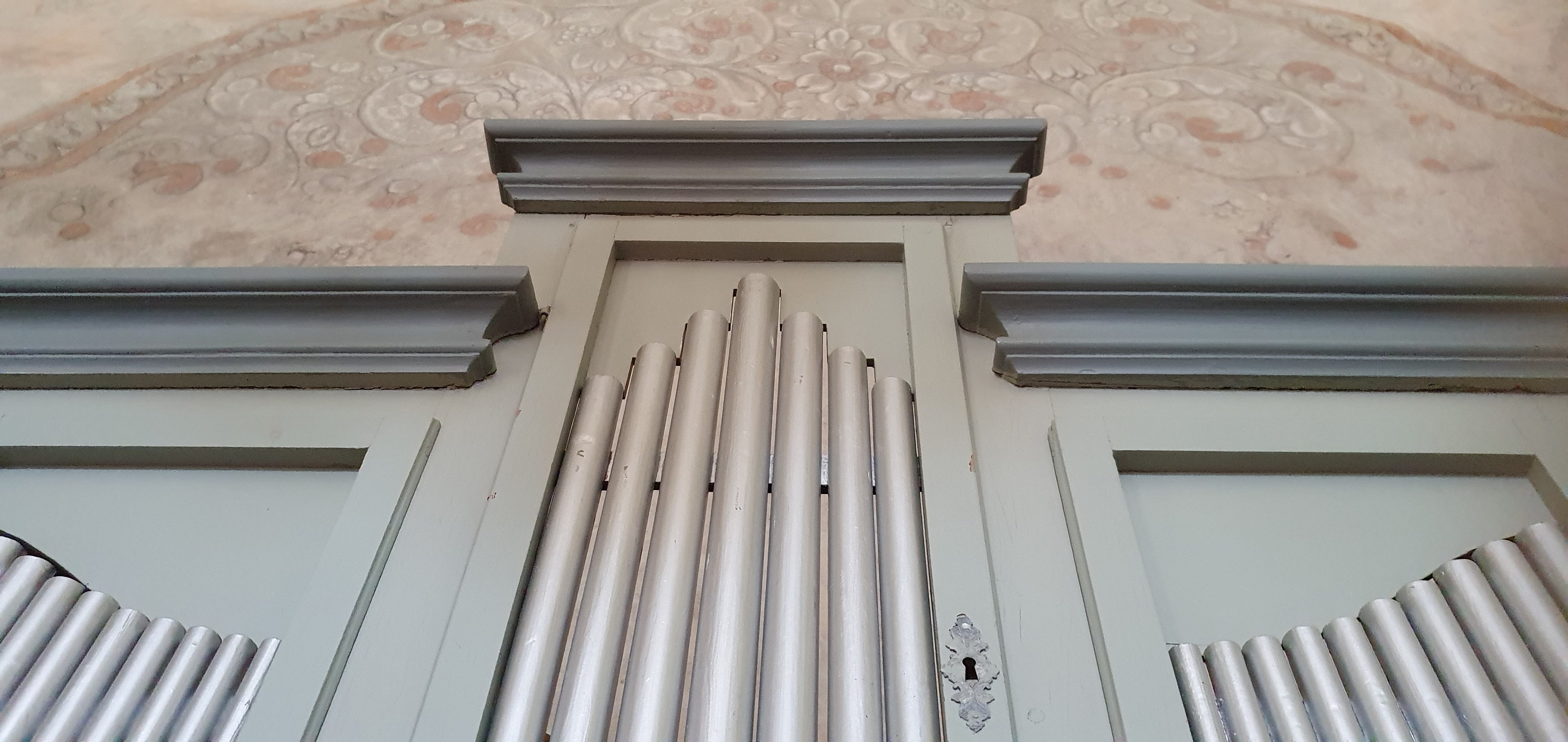 Tre ljudande stämmor, pipor av kärnfuru, tre plana pipfält, mekaniskt traktur och registratursystem.