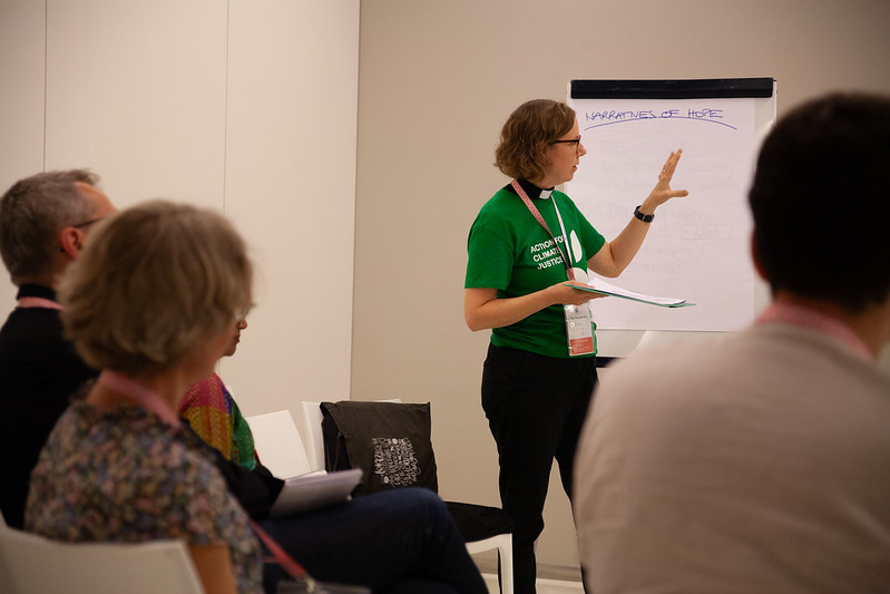 ”För att kunna förstå världen, måste du kunna föreställa dig den. För att kunna förändra världen, måste du kunna föreställa dig den annorlunda från hur den är nu” sa Sofia Oreland, workshopsfacilitator, präst i Svenska kyrkan och doktorand i Global kristendom med avhandlingsämne klimataktivism och teologi i Sverige och Sydafrika.