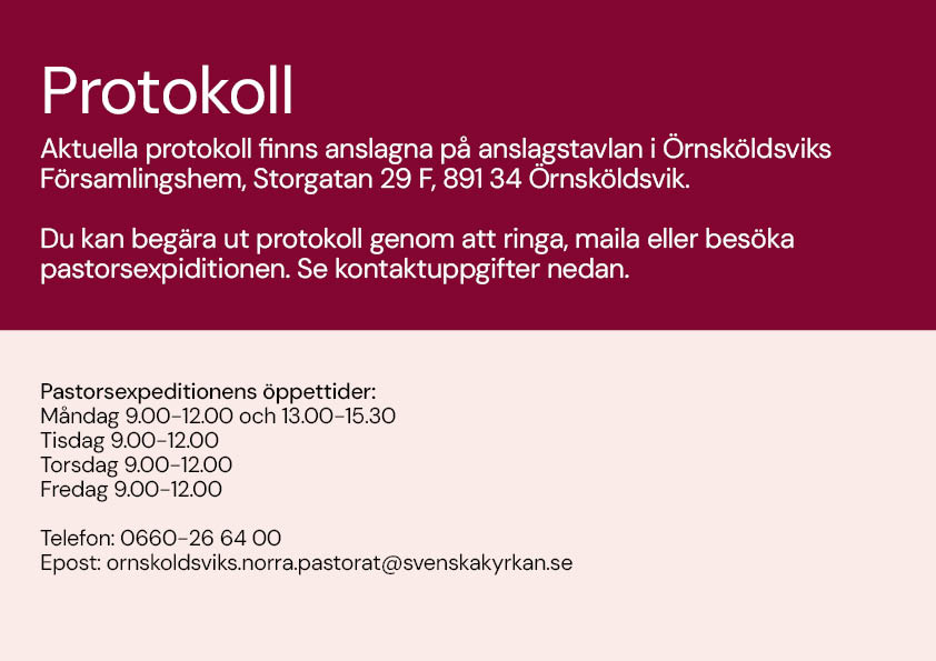 Aktuella protokoll finns anslagna på anslagstavlan i Örnsköldsviks