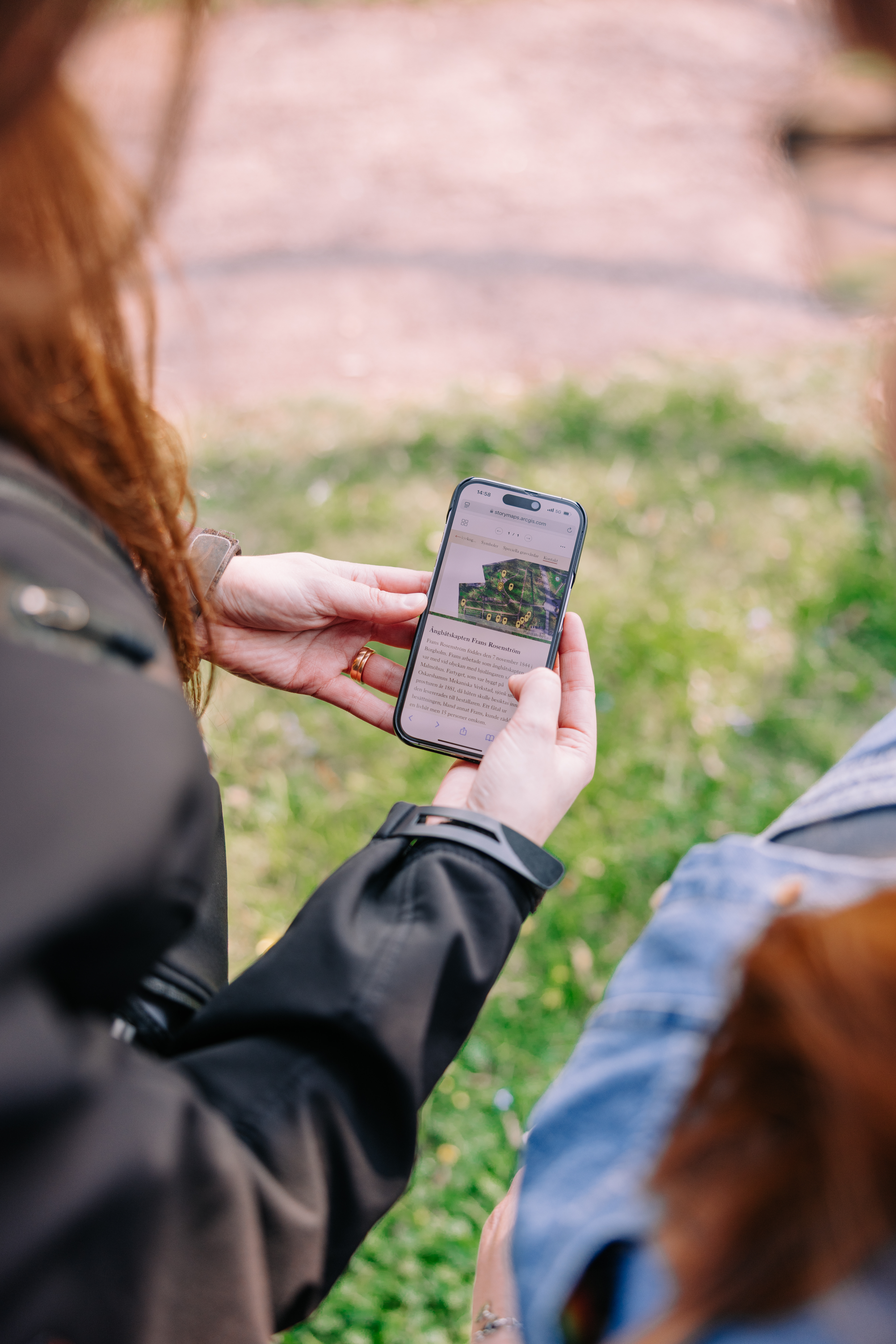 För att kunna genomföra vandringen på plats på kyrkogården behöver du din mobiltelefon. Genom att scanna QR-koden som sitter på anslagstavlan på kyrkogården kommer du direkt till startsidan. Bläddra i menyn och använd kartorna för att orientera dig. Många mobiltelefoner idag har inbyggda QR-läsare, men på vissa telefoner kan du behöva ladda ner en särskild app som läser QR-koder.