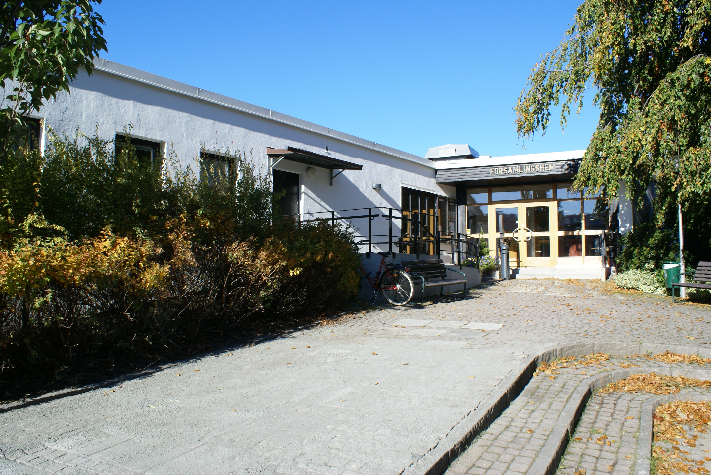 Partille församlingshem, den vita byggnaden mellan kyrkan och kommunhuset