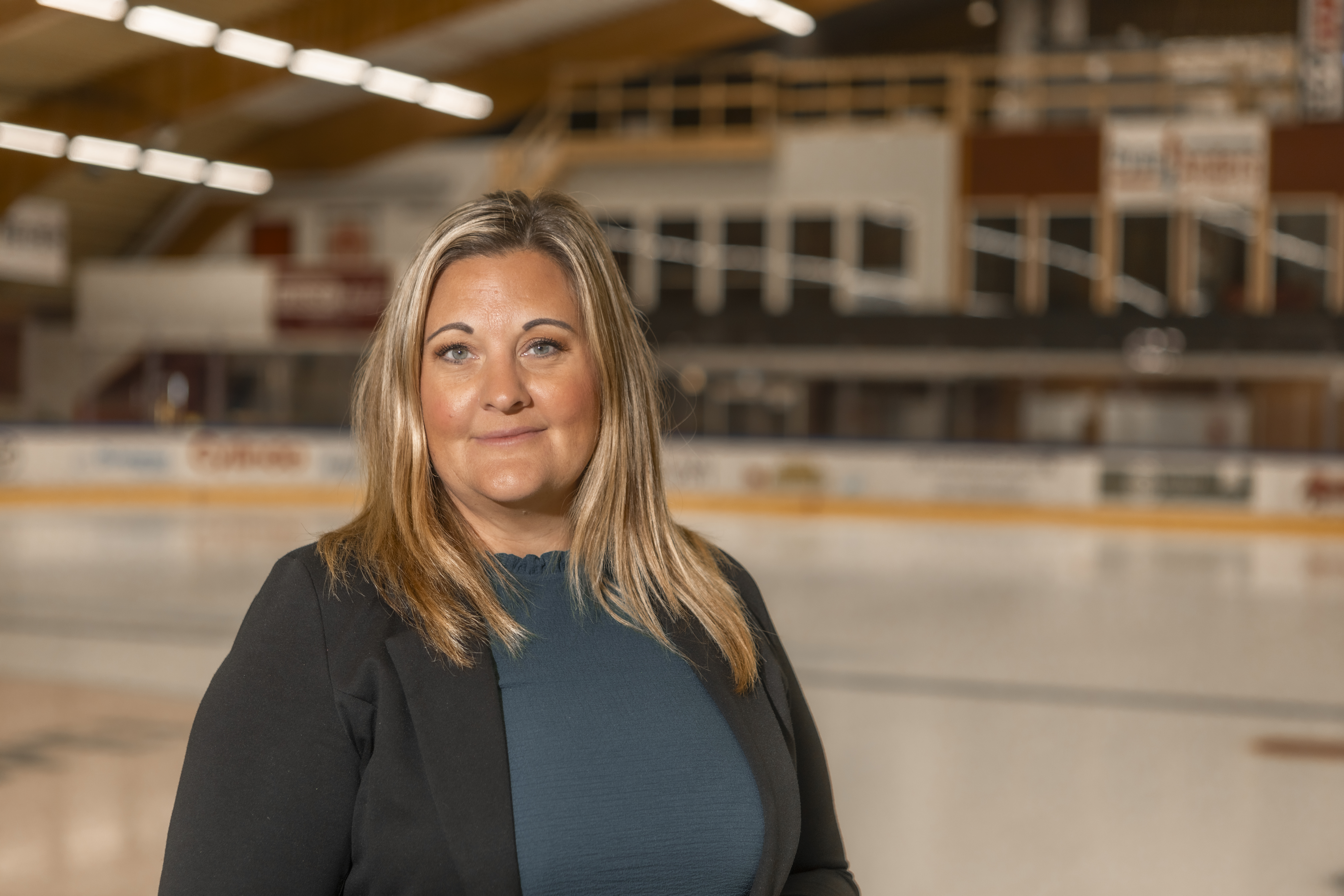 med utsikt över en nedsläckt ishall. I augusti tändes och riktades ljuset på klubbens nya klubbchef Petra Axelsson. Men det var verkligen ingen självklarhet att hon överhuvudtaget skulle sätta sin fot i ishallen.