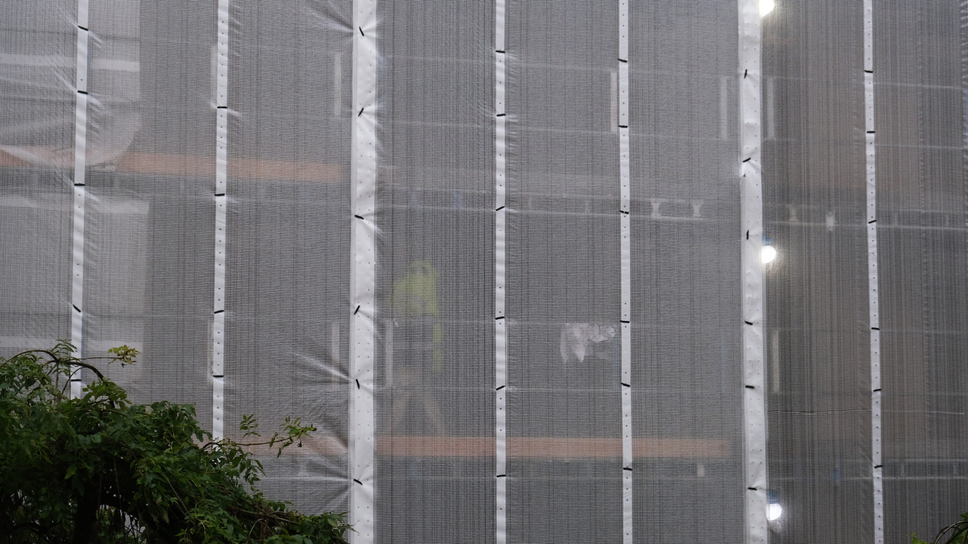 På byggarbetsplatsen har det hänt mycket sedan sist. Ingången är nu gråmålad och man har byggt in hissen så att den står innanför skyddsplanket, säkerhetsåtgärder har genomförts och arbetet är i full gång på väggen mot gården.
