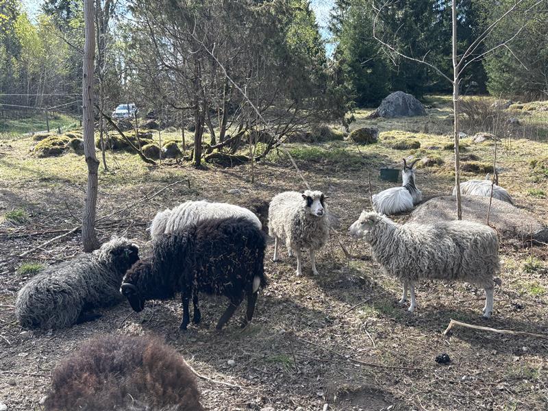 De noga utvalda svenska lantraserna består av åtta Roslagsfår och tre Jämtgetter. Roslagsfåren är ganska små, lugna och tillgivna. Jämtgetterna är bra på att beta busk, sly och grovt gräs. Arbetet är långsiktigt och över tid kommer djur och växter som trivs i miljön att växa fram.