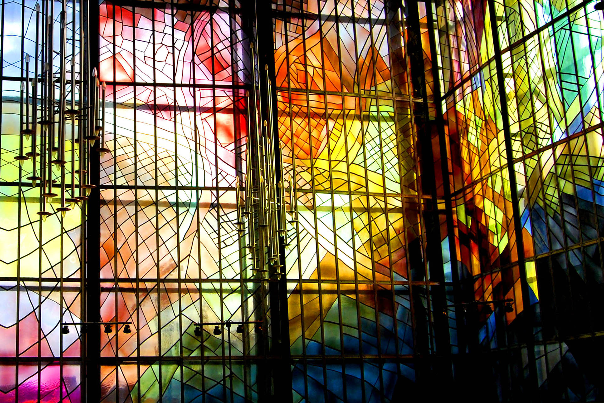 Glasmosaiken i Tibble kyrka, som utgör dess väggar, täcker 950 kvadratmeter. Ett tips att är gå in i kyrkan en solig dag och låta sig översköljas av det mångfärgade ljus som breder ut sig över rummet. Det blir en upplevelse av färg och stillhet. Glasmosaiken är så mångfacetterad att de många delarna i den kan ge olika tolkningar hos varje enskild person. Men för konstnären Mogens Jörgensen var det Uppenbarelseboken som var den främsta inspirationskällan.