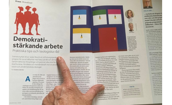 Insatser och aktiviteter inom ramarna för programmet Social hållbarhets arbete uppmärksammas i nr 2 av Ducatus, som är Svenska kyrkans arbetsgivarorganisations magasin. Bland annat lyfts tankarna om kyrkan som "oenighetens gemenskap" och dessutom presenteras programmets rapport "Våldsbejakande extremism och församlingarnas arbete med tillit och demokratifrågor".