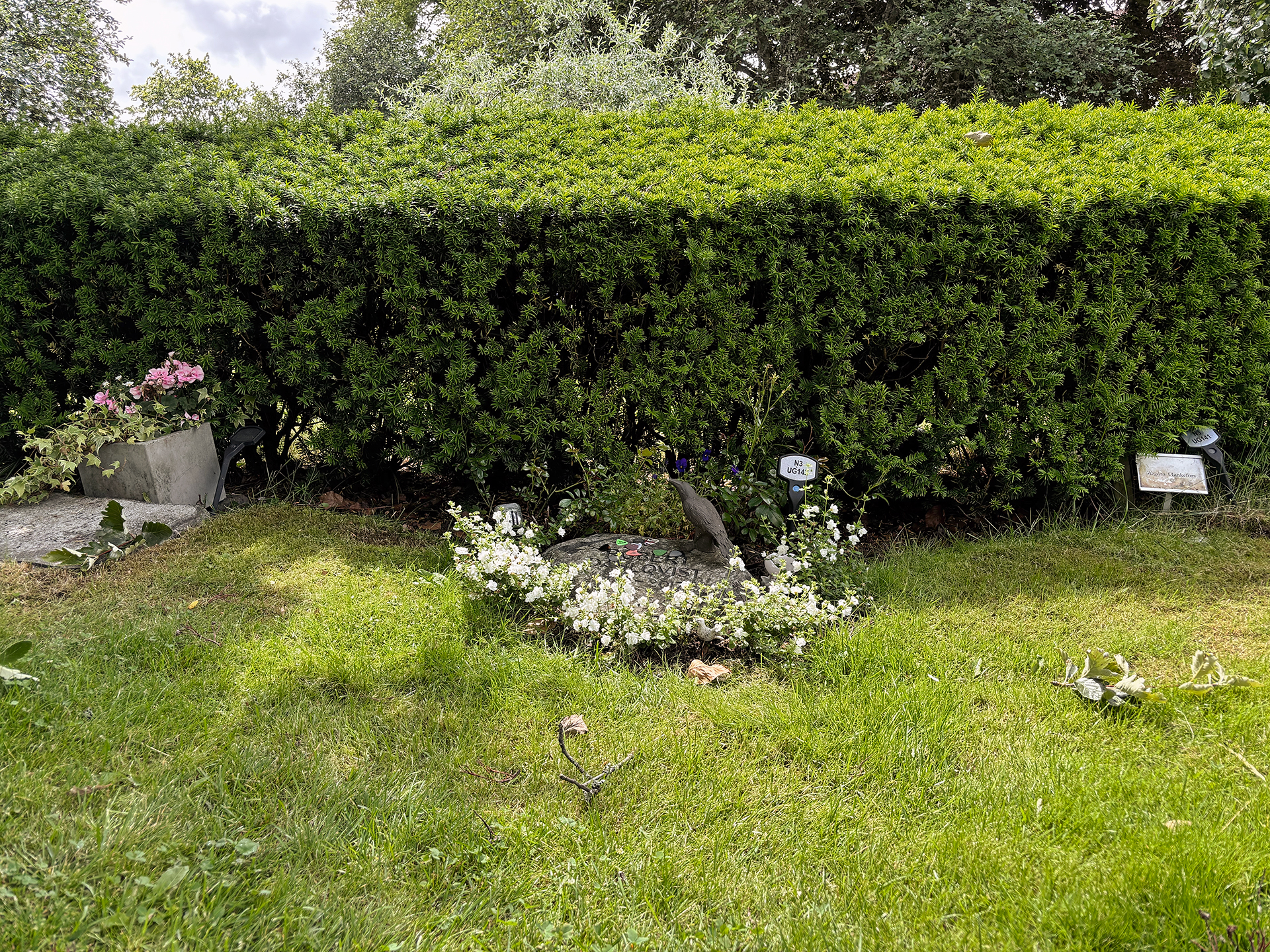 Här vilar de jordiska lämningarna av rockgitarristen Robert Dahlqvist, mera känd som Strängen. Han föddes på Gotland och dog i Stockholm, men hemstaden var Uddevalla.