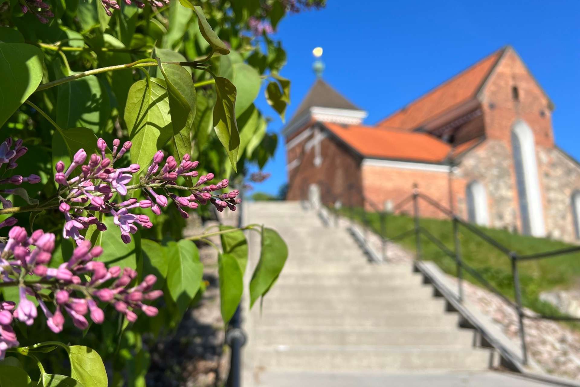 Glasfönstren i koret tillkom vid restaureringen 1904–05. De är utförda av konstnären Carl Wilhelm Pettersson och föreställer dels bibliska händelser, dels historiska personer. Bland dem som avbildas kan nämnas Erik den helige, den Heliga Birgitta, Gustav II Adolf och psalmförfattaren Johan Olof Wallin.