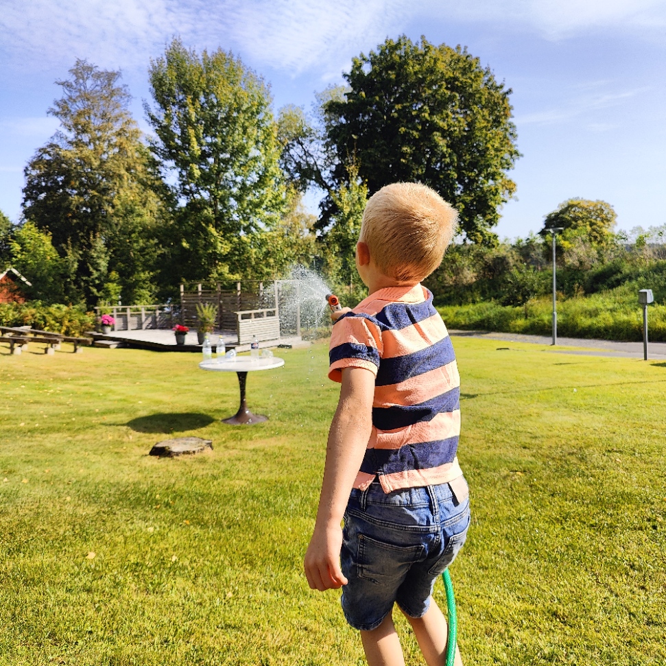 Efter gudstjänsten blev det dopfest med femkamp. Kasta vattenballonger i hink och spruta ned petflaskor med vattenslang var några av aktiviteterna. Mellan kyrkan och församlingsgården fanns en tipspromenad med vattentema. Med frågor om allt från vad kommunen tar i vattenavgift till frågor om olika sånger om vatten.